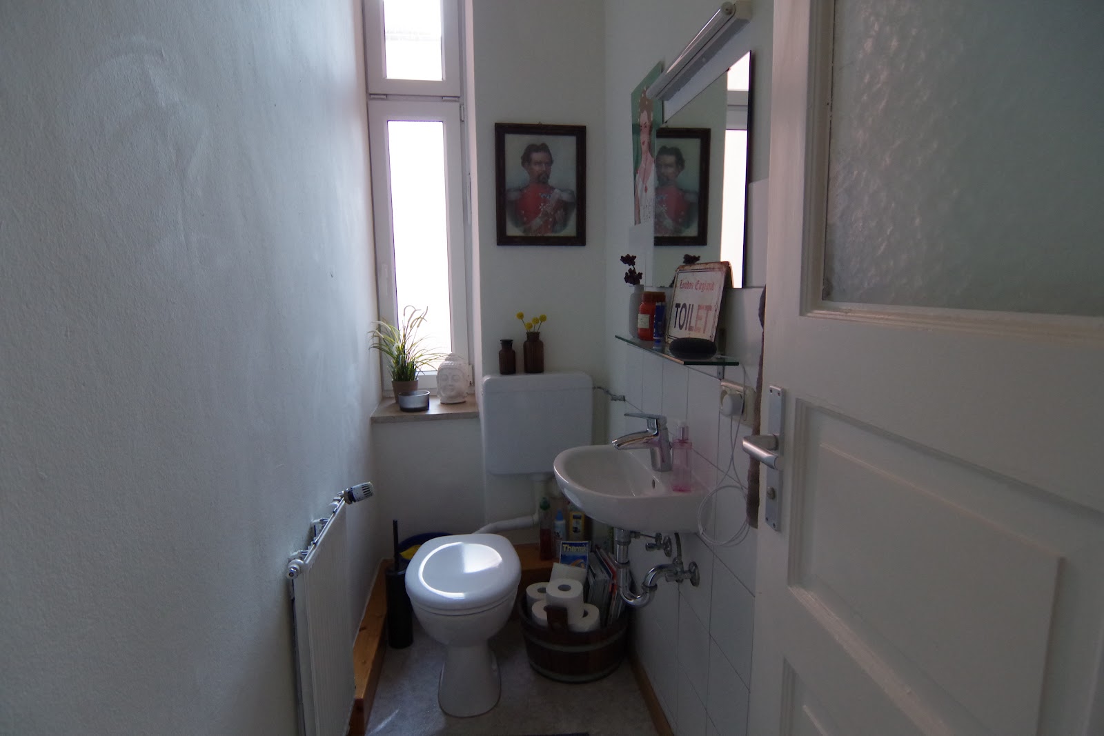 Die 2-Zimmer-Altbauwohnung liegt im 1. Obergeschoss des Vorderhauses eines Wohn- und Geschäftshauses aus dem Jahr 1898 (ohne Lift). Das Gebäude besteht aus einem Vorder- und einem Rückgebäude mit insgesamt 22 Wohnungen, einer Ladeneinheit und einer Gaststätte mit Freischankfläche.